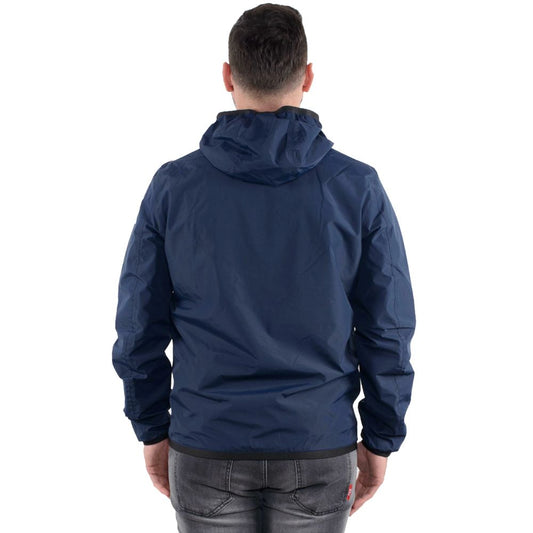 Blue Nylon Women Jacket with Feather Padding and Fur Hood