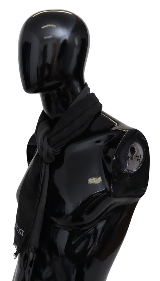 Gray Wool Unisex Neck Wrap Shawl Fringes Logo Scarf