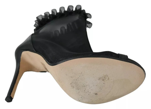 Black Leather Mesh Stiletto High Heels Peep Toe Boots Shoes
