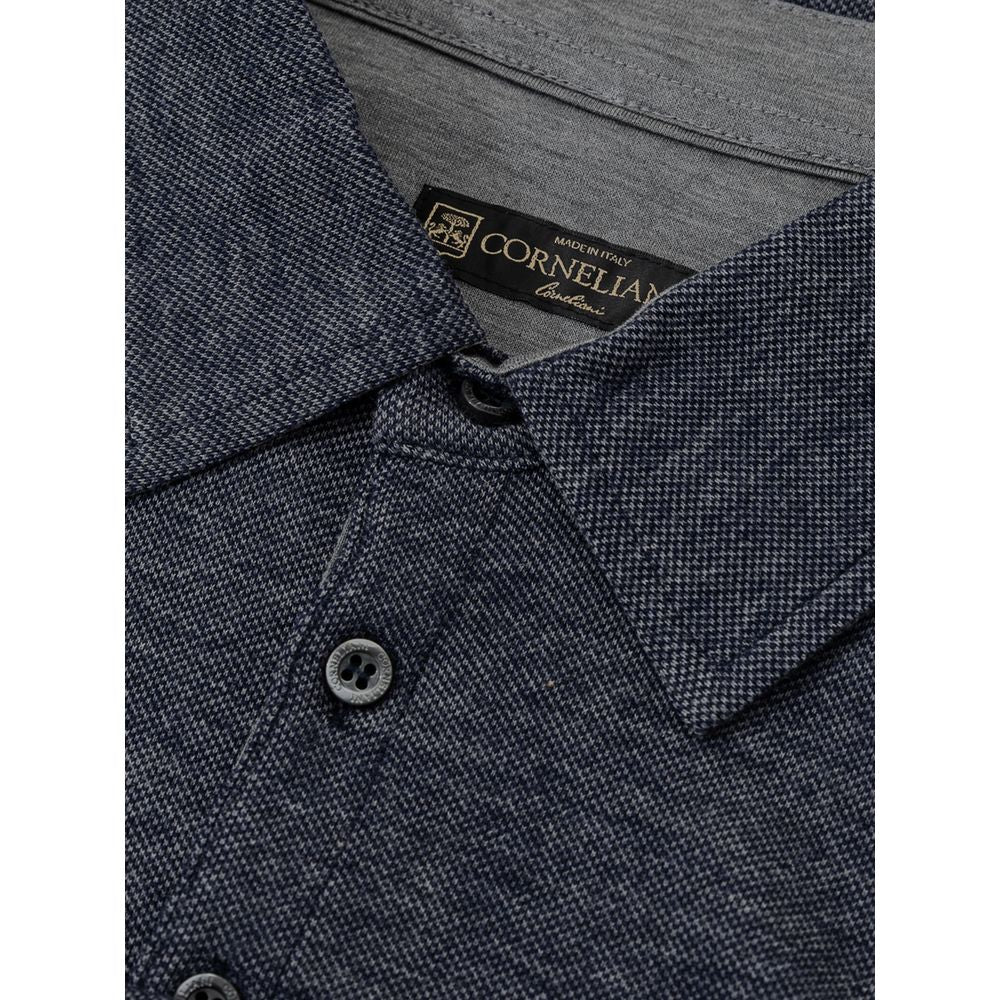 Corneliani Long-Sleeve Polo Shirt in wool and cotton, featuring a classic four-button collar and a small tone-on-tone logo at the bottom.